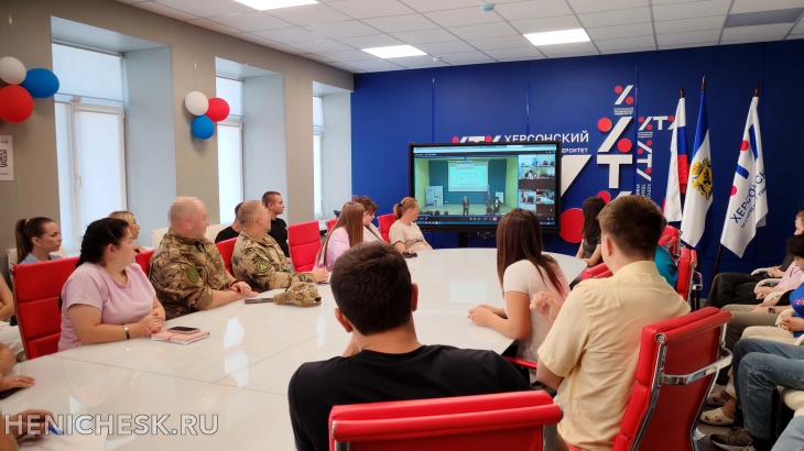 ВДень солидарности в борьбе с терроризмом в городе Геническе Херсонской области состоялся телемост с участием ветерана Управления «А» Центра специального назначения Федеральной службы безопасности Российской Федерации и кадетами подшефных классов Росгвардии.