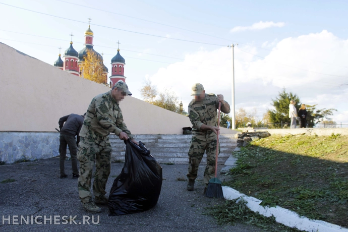 В Генической Горке сотрудники ОМОН территориального Управления Росгвардии совместно с представителями регионального штаба движения «Юнармия» приняли участие в работах по благоустройству мемориального комплекса защитникам Арабатской Стрелки в годы Великой Отечественной войны.