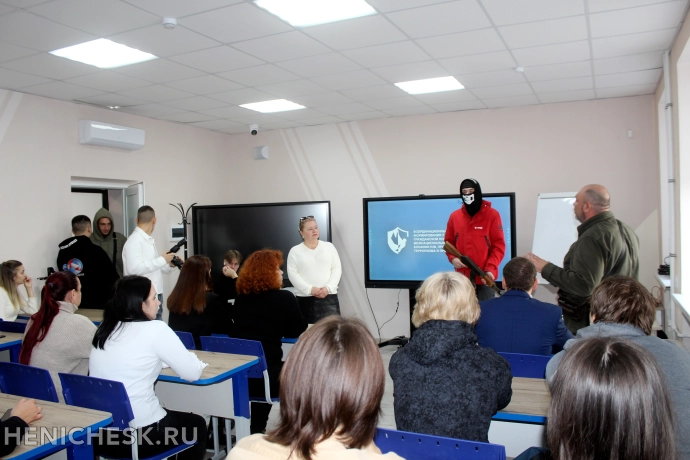 Для преподавателей и студентов вуза сотрудники Росгвардии совместно с заместителем директора Координационного центра по укреплению активной гражданской позиции, противодействия идеологии терроризма и профилактики экстремизма в Херсонской области Дмитрием Кульшенко провели комплексное занятие по антитеррористической защищенности.