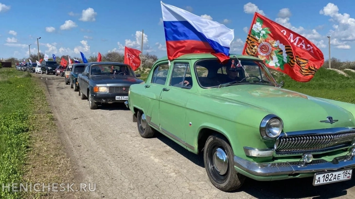 Автопробег Победы Единая Россия проводит по всей стране в преддверии «Диктанта Победы». Возглавила колонну военная автоинспекция на автомобиле ГАЗ 2330 «Тигр», далее ехала машина Военной комендатуры Херсонской области «Садко» и открывал «гражданскую» часть колонны легендарный ГАЗ-21 «Волга».