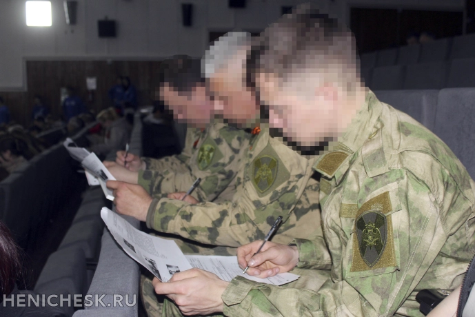 Военнослужащие и сотрудники Управления Росгвардии по Херсонской области традиционно приняли участие в Международной патриотической акции «Диктант Победы». Свои знания об истории Великой Отечественной войны они проверили на площадке, развернутой в кинотеатре «Россия» в городе Геническе.