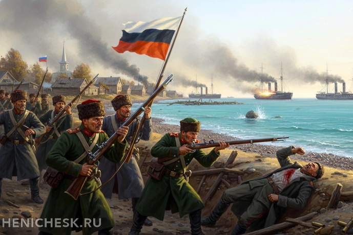 В статье подробно рассказано о событиях Крымской (Восточной) войны, когда 16-18 мая 1855 года немногочисленный гарнизон Геническа, состоявший из казаков, пехоты и солдат Мелитопольской инвалидной команды Внутренней стражи, вступил в неравный бой с объединённой англо-французской эскадрой. Благодаря мужеству и стойкости защитников, включая ветеранов, вооружённых устаревшими кремниевыми ружьями, врагу не удалось прорваться в Сиваш и уничтожить Чонгарский мост — ключевую артерию снабжения русской армии. Этот подвиг на долгие годы закрепил за Геническом почётное неформальное название «малый Севастополь».